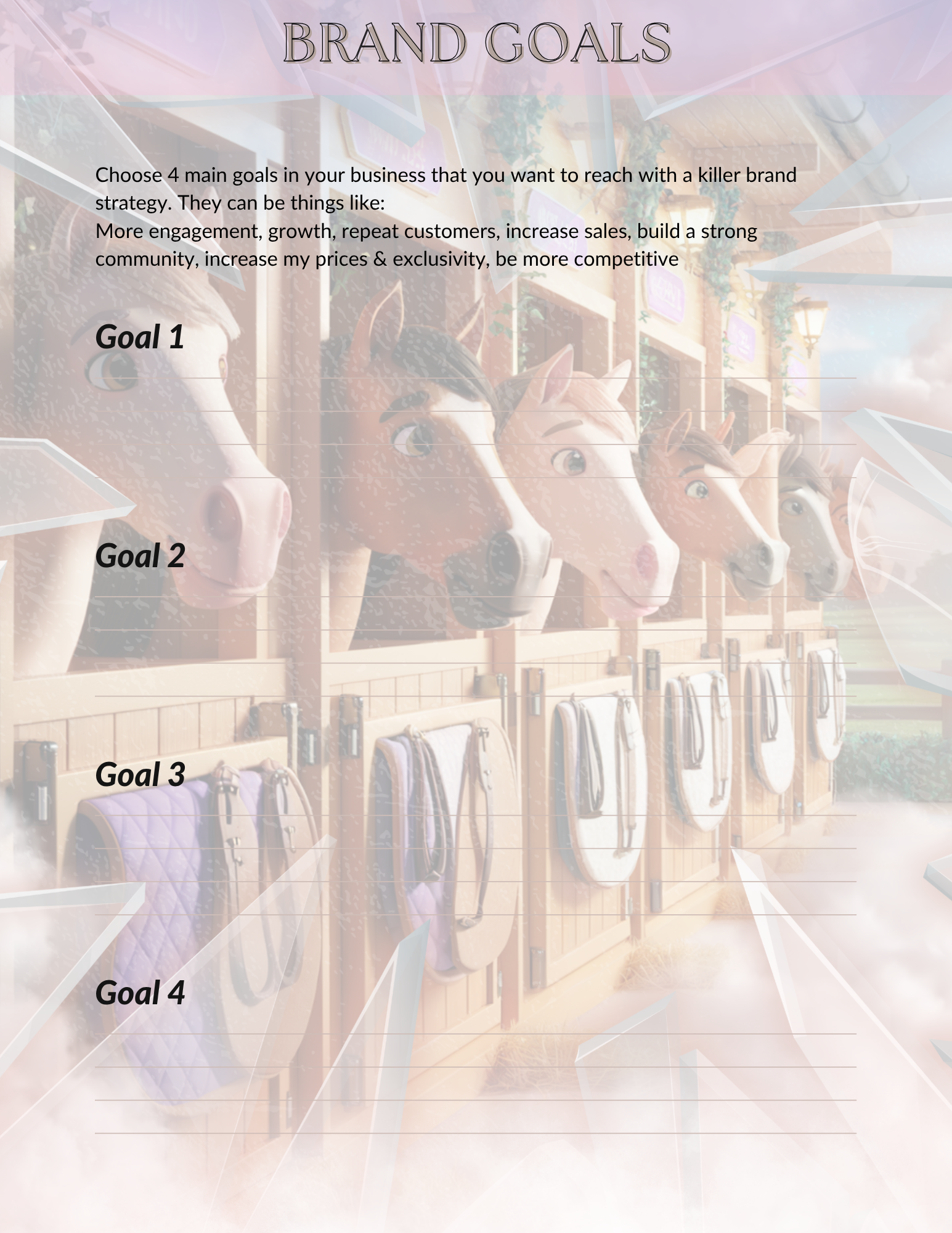 Designed to help you define your brand identity, voice, message, visuals and competitive positioning, this premium digital planner is your complete roadmap to creating a strong and consistent brand — presented in a unique GlowKit creative style.