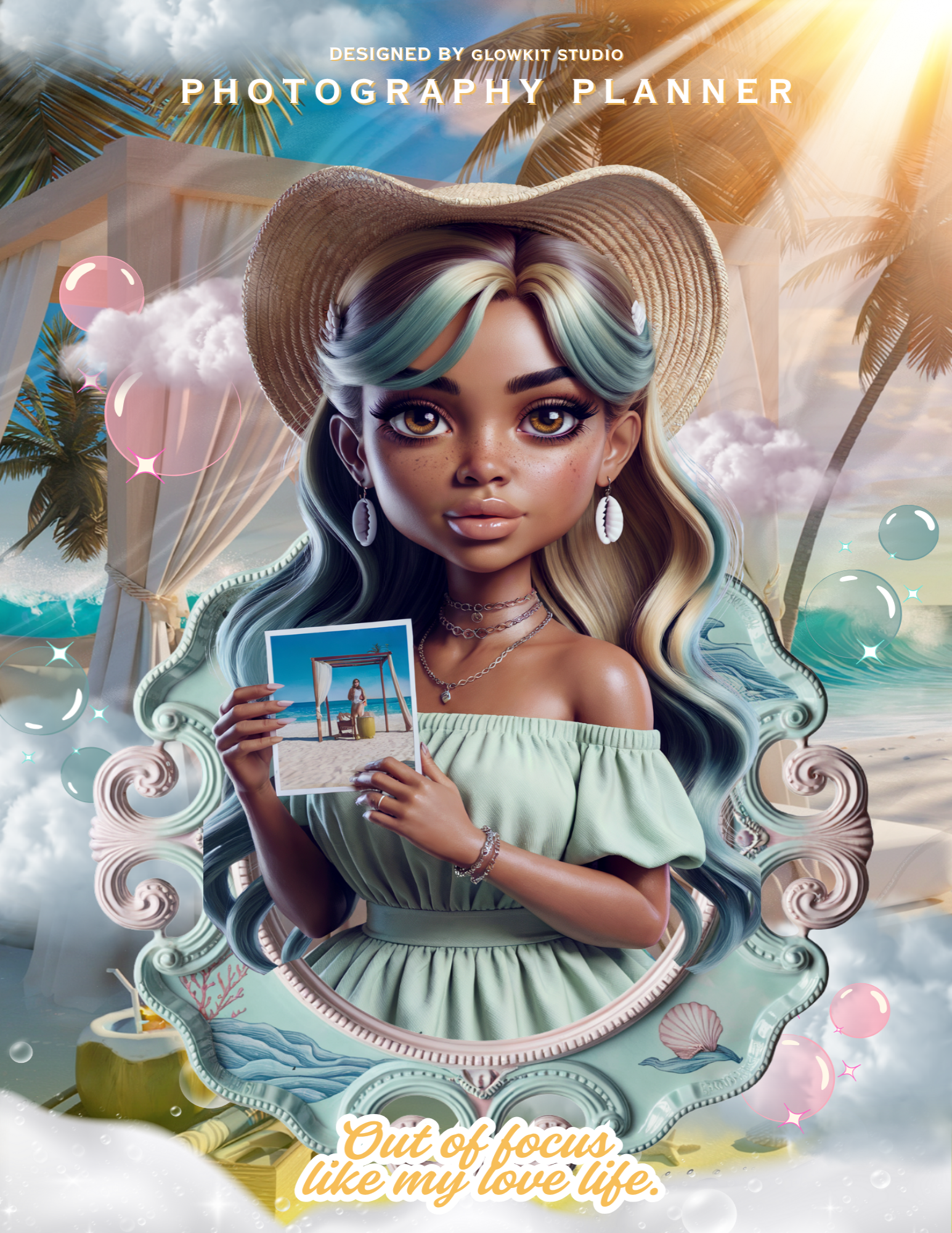 Designed to help you manage sessions, clients, packages, pricing, workflows, marketing, finances and logistics, this premium digital planner keeps your business structured, productive and profitable in a clean GlowKit layout with a dreamy beach aesthetic.